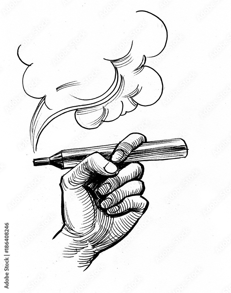 Poster Foto Hand Holding A Vaporizer Black And White Ink Drawing