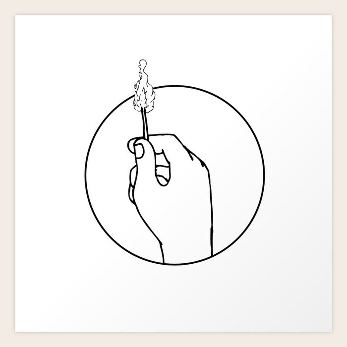 Hand Holding Burning Matchstick Drawing Art Print By Patrimonio