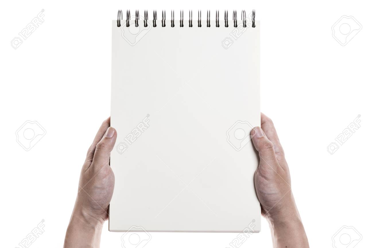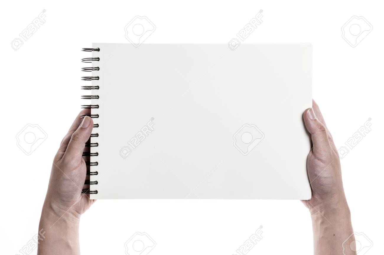 Hand Holding Drawing Book Isolated On White Stock Photo Picture And