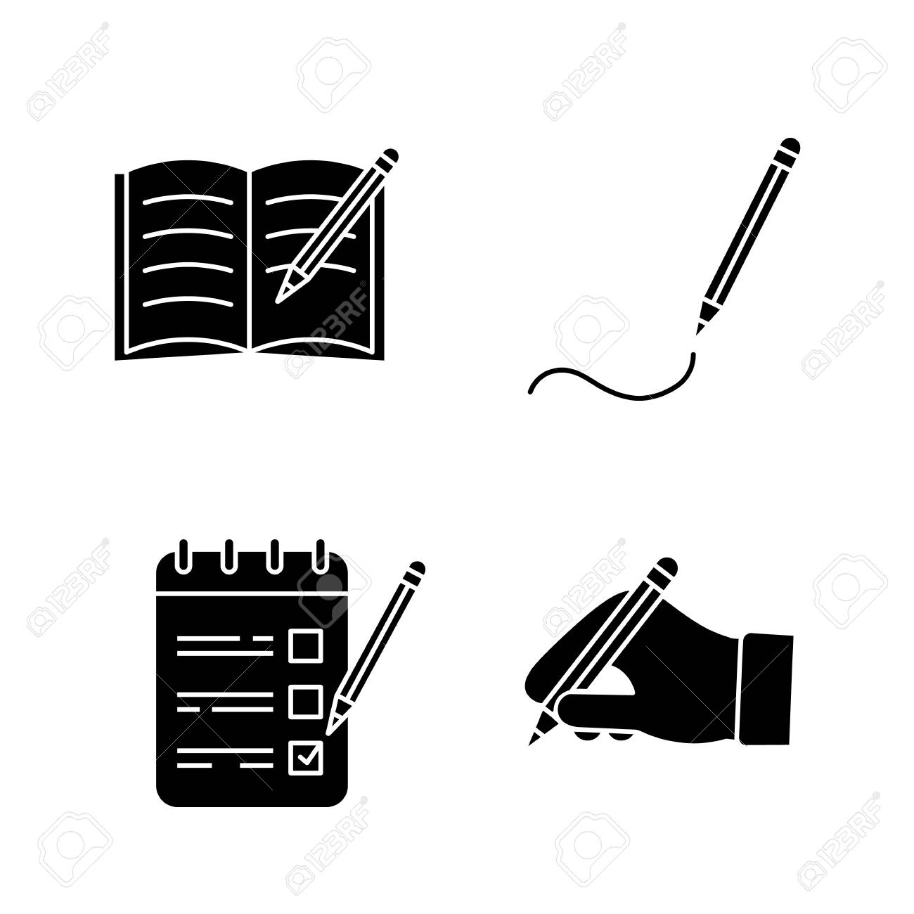 Writing With Pencil Glyph Icons Set Copy Book Drawing To Do