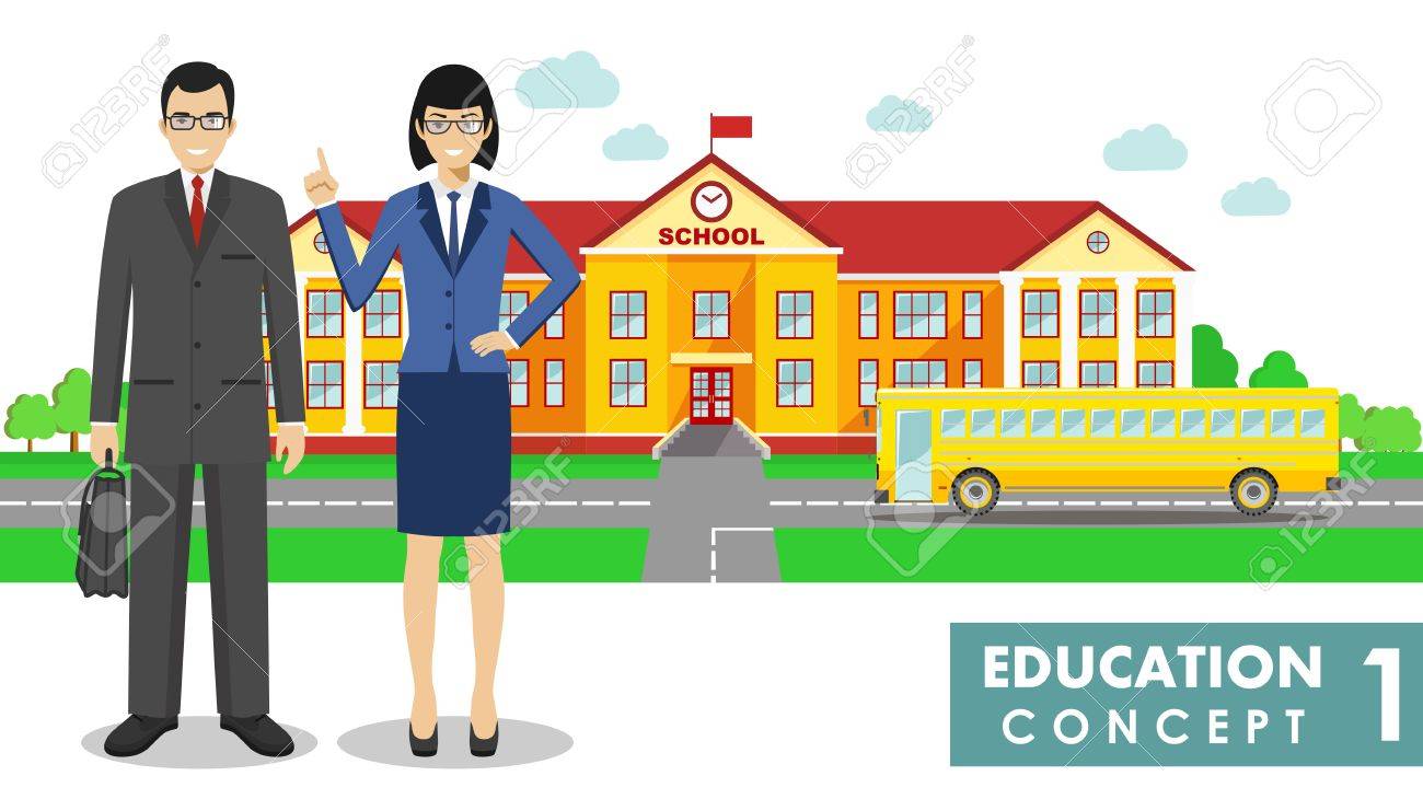 Vector Art Male And Female Teachers Standing In Front Of
